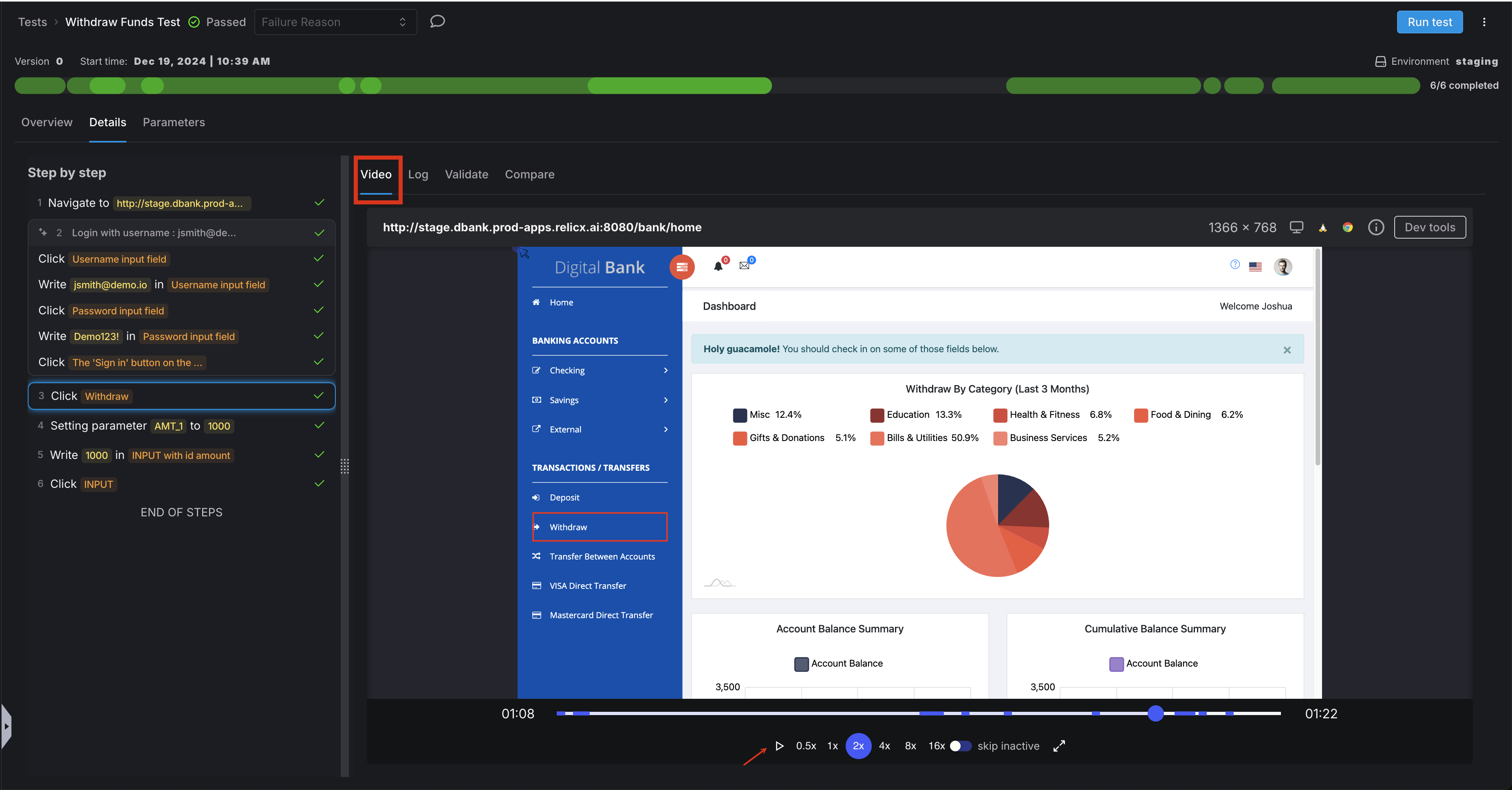 • Always review videos for failed tests: The visual record often makes it immediately obvious what went wrong