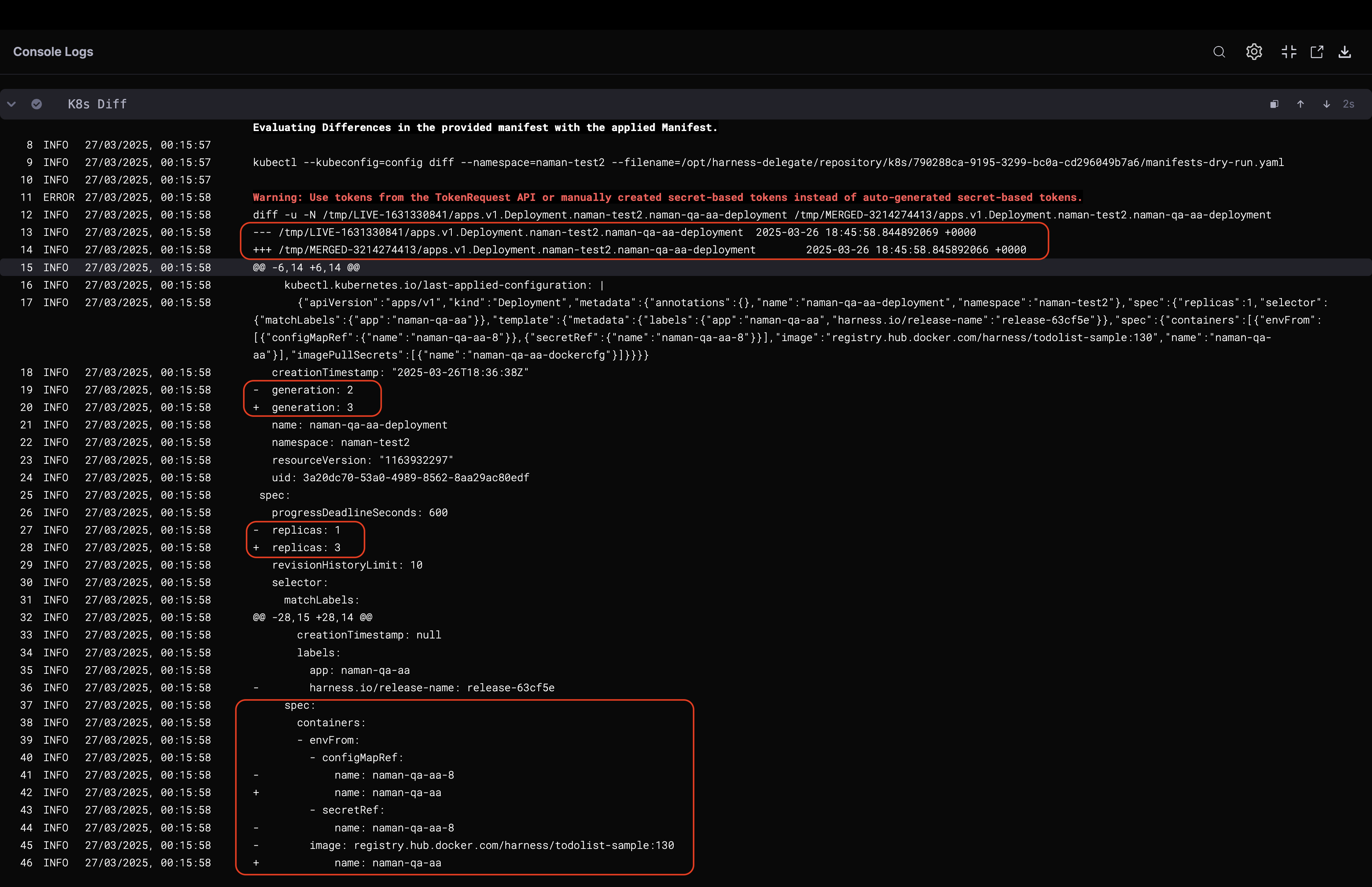 To see an example of how to use the K8s Diff Step, visit the Harness Community Repository.
