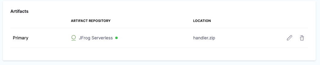 Here's an example of a serverless.yaml file referencing primary and sidecar artifacts:
