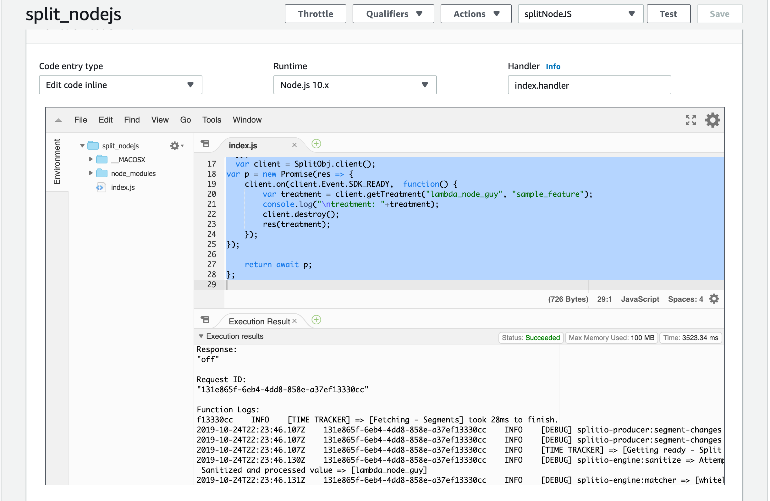 This example demonstrates how to run the Split Node.js SDK within AWS Lambda and retrieve feature flag treatments programmatically.