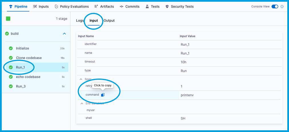 Additionally, certain step types, such as Run steps and Shell Script steps, can utilize and produce input, environment, and output variables that you define in the step settings. You can also reference these with expressions.