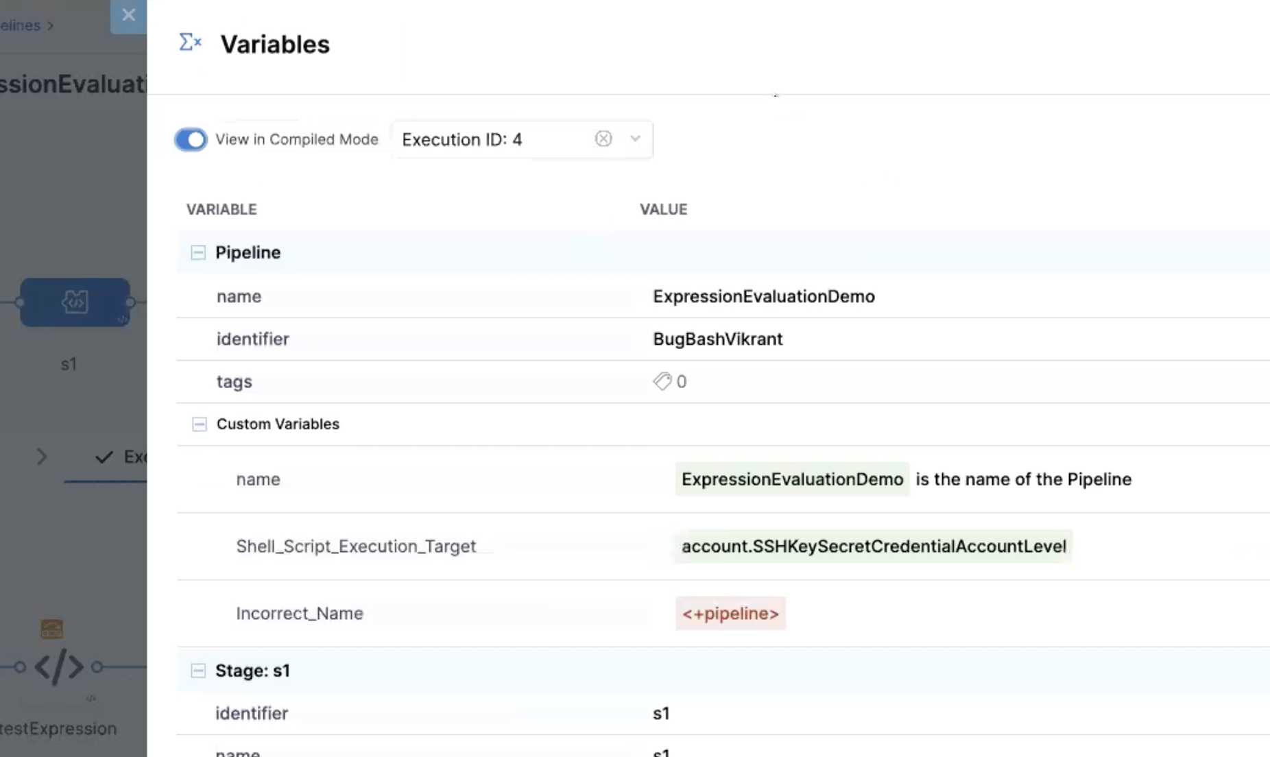 • Infrastructure expressions can be resolved only after Harness has progressed through the Infrastructure section of the pipeline.