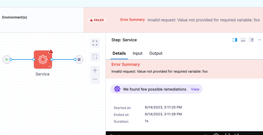 IllegalStateException: Unexpected token to begin object deserialization: STRINGerror during JSON deserialization. The step could not process valid ARM templates that deployed successfully through the Azure CLI. The deserialization logic now correctly handles the ARM template and parameter formats returned by the Azure API. (CDS-118917, ZD-104638) - Fixed an issue where creating a service override for a specific environment failed with an "Oops, something went wrong on our end" error in the UI and timed out via the Terraform provider. This occurred when a project was deleted and recreated — orphaned records from the original project caused a