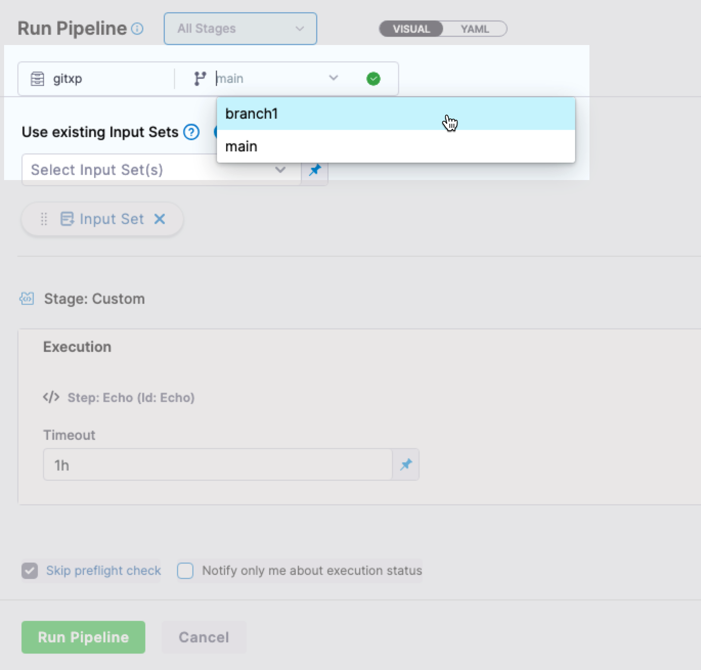 send status back to gitdoes not publish commit status when the pipeline is triggered via the Harness code trigger in custom stages. Status handling was missing in the Harness code repository because it lacks a connectorRef. Added proper handling for the code repository. (PIPE-31736, ZD-100597) - Fixed an issue where executing a pipeline directly from an input set failed with a validation error for a required variable, even though the variable value was already populated. This was caused by an empty pipeline identifier being sent in the input set API call. (PIPE-32073, ZD-102863)