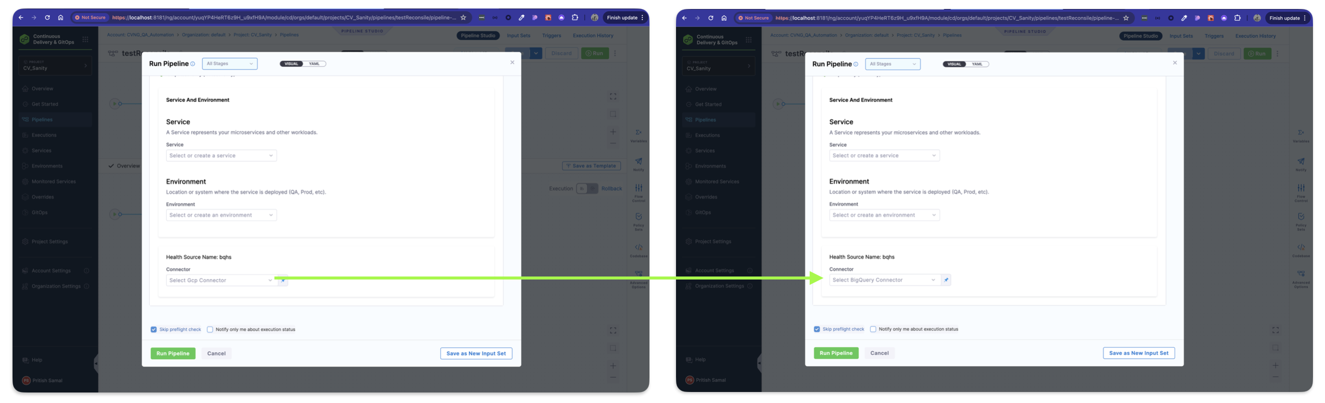 Added support for expressions in Service and Environment for account/org-level Stage and Pipeline templates.