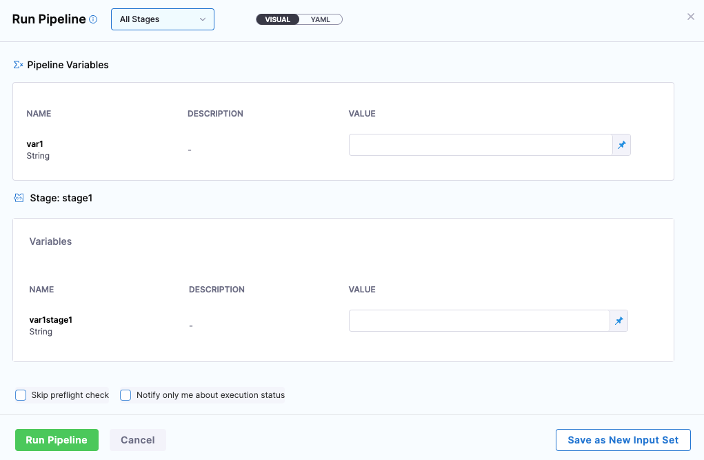 Pipeline variables were not showing up in an Input Set and Run Pipeline settings when a Pipeline template was used in a Pipeline.